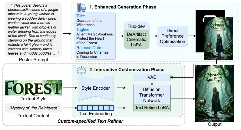 - X Fu, N Huang†, J Li, J Guo, X Li†, TY Lee. PolyArt: Customizable Multilingual Movie Poster Generation via Diffusion Transformer[C]. ACM SIGGRAPH Asia Posters, 2025.WOS:001695183600010. EI Accession number: 20260720068461